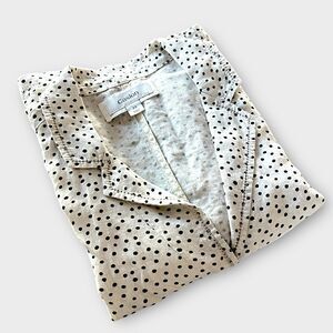 Lightweight and stylish, this Caslon 100% Linen Blazer in Ivory with Black Polka Dots is perfect for layering. Featuring 3/4 sleeves, a relaxed fit, and front pockets, its a versatile staple for any wardrobe. Gently used and in excellent condition!