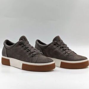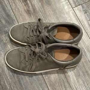 Preowned gray leather sneakers size 8 Gentle signs of wear