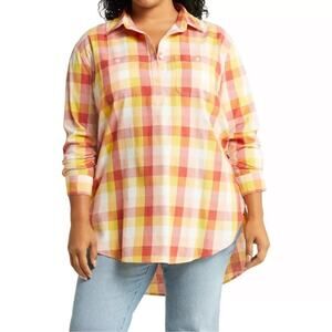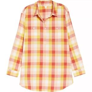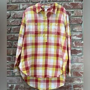 Caslon Becca Plaid Long Sleeve Button up Oxford Tunic NWOT Medium Hi Lo