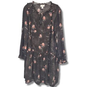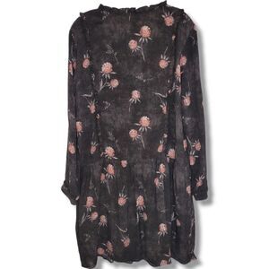 Caslon Black Dress Pink Floral Print LS Scoop Tie Ruffle Accents Drop Waist S