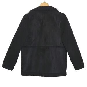 Caslon Black Faux Suede Sherpa Jacket Open Front Cozy Casual Fall Layering Size M