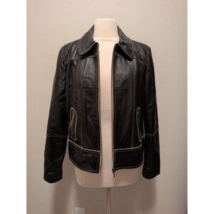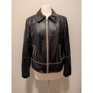Caslon Black Leather Jacket With Contrast Stitching XL Genuine Leather