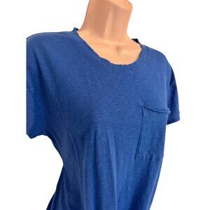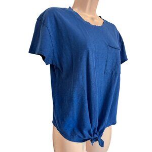 This blue Marmara pocket tee features a stylish knot hem and short sleeves, perfect for casual outings or a relaxed day at home. New with tags, this shirt combines comfort and modern style in one.