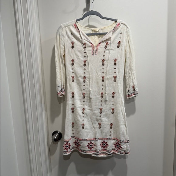 Caslon Cream Tunic with Red Embroidery