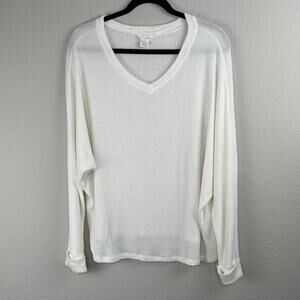 Caslon Dolman Sleeve Ribbed Knit V-Neck Baggy Oversized Fit White Sweater Size Large