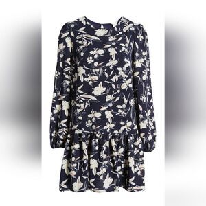Caslon Floral Print Long Sleeve Drop Waist Minidress