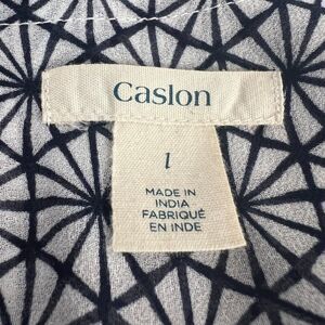 Caslon Geometric Pattern Popover Blouse Womens Large Blue Semi-Sheer V-Neck Top