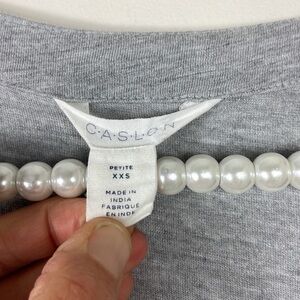 Caslon Gray V Neck Drawstring Tie Layer Jersey Knit Dress XXS Petite. Definitely oversized. Loose fitting.