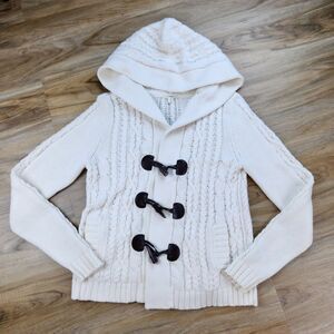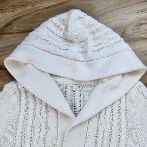 💜Caslon Ivory Cable Knit Button Hooded Long Sleeve Cardigan Medium