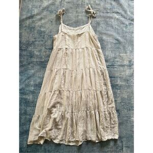 Caslon Ivory Khaki Stripe Tie Shoulder Tiered Sundress Size 1X