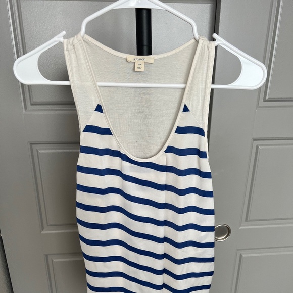 Very comfortable ivory colored striped shirt. Can be dressed up with the right layers. Size XS