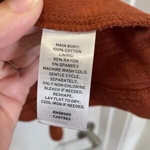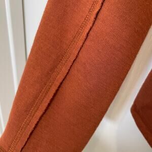 Reddish brown knit blazer jacket by Caslon, from Nordstrom. Featuring a single front button closure, front slit pockets, and a clean-line no-lapel silhouette. Second pic shows the blazer in a different color shade - shown for style / fit. Excellent pre-owned condition. Bust across the front area measures approx. 20 inches.