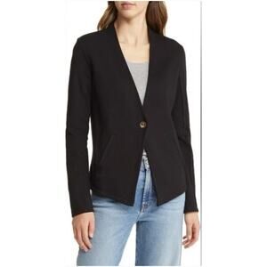 Caslon Knit Blazer Jacket Brown One Button No Lapel w/ Pockets Minimalist M