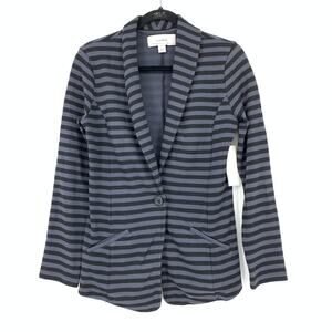Caslon Knit Blazer Jacket Womens Size Medium One Button Striped Black Gray NEW