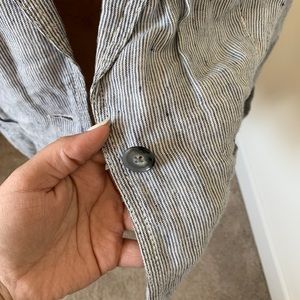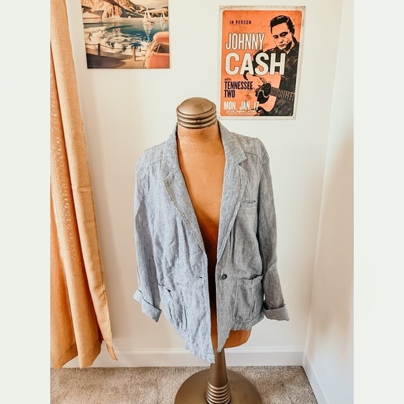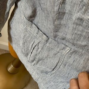 Super cute and relax blazer with linen pin stripe design! Breezy and perfect for any laid back outfit