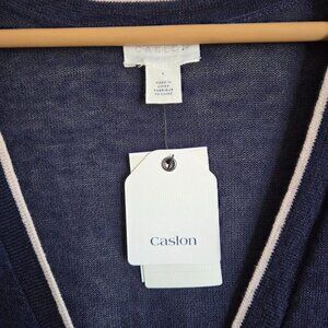 Caslon Linen Blend Button Up V-Neck Cardigan Navy Size Large Nautical Preppy NEW