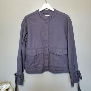 Caslon Linen Blend Jacket Size Small Gray Snap Button Pockets Light Utility