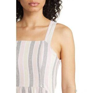 Caslon Linen Blend Striped Maxi Dress Beachy Vacation Resort Summer Boho Large