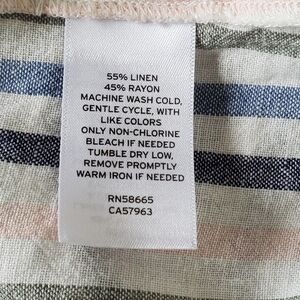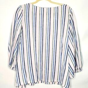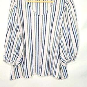 Caslon Linen Blend Striped Puff Sleeve Top Size XL V-Neck Popover Casual Coastal