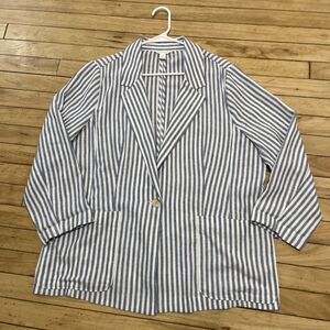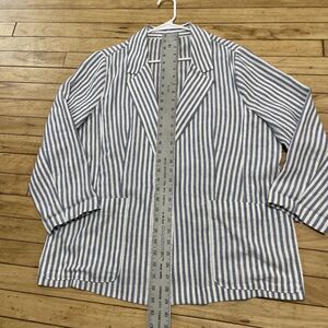 Excellent pre-owned Caslon Linen Jacket Women XXL Blue White Striped Yacht Nautical Bach Boho Coastal Unstructured Blazer 2XL; some normal wear from washing pictured; excellent overall