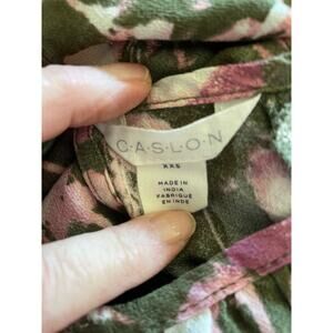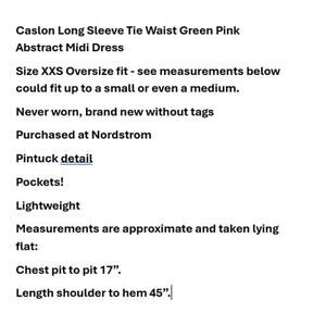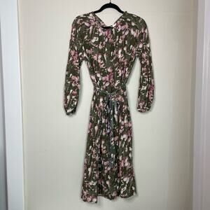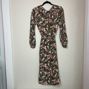 Caslon Long Sleeve Tie Waist Green Pink Abstract Midi Dress Size XXS