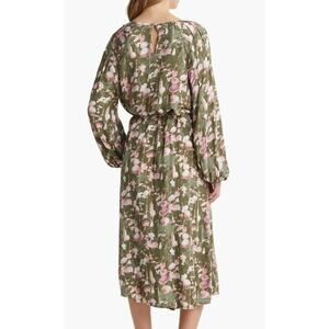 Caslon Long Sleeve Tie Waist Green Pink Abstract Midi Dress