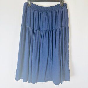 Caslon Maxi Skirt Women's Medium Blue Tiered Broomstick Cotton Linen Flowy