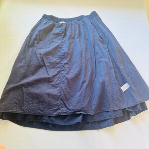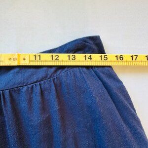 The Caslon (Nordstrom) maxi skirt in women's size medium is a flowy and stylish piece made from a blend of cotton and linen in a dark blue color. This long tiered lined skirt features a pull-on closure and an elastic waist for added comfort. Two waist pictures show the stretch. Please check your measurements to the approximate measurements provided. It comes from a pet and smoke free environment.