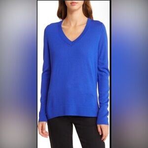 Caslon Merino Wool Blend Crewneck Sweater in Royal Neon Blue Size Small