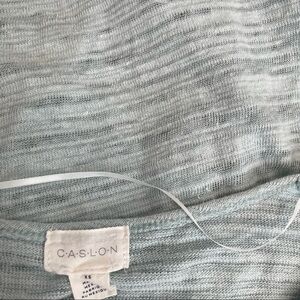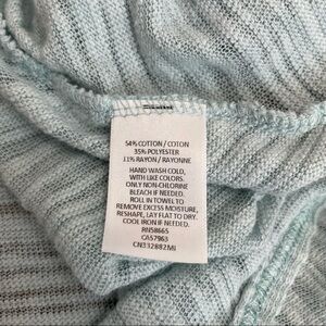 Light mint green color, burn out style fabric with v neckline and side slits. Great for layering, could be worn as a light weight sweater.