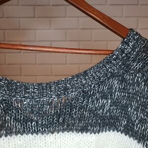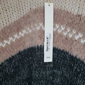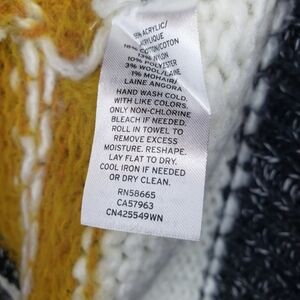 A merry mix of tones, hues and textures stripes this V-neck pullover that's sure to be the hit of sweater season.