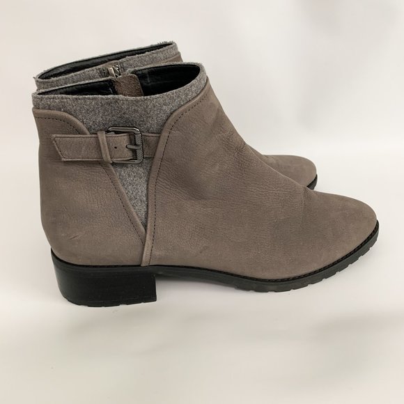Caslon Oaklee Water Resistant Bootie Stone Gray Nubuck with wool insert in size 10. Some dirt and debris on bottom sole. Very light signs on wear on exterior on side and back edge. Insulated interior