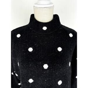 Caslon Polka Dot Mock Neck Sweater Black Ivory Womens Medium New Long Sleeve