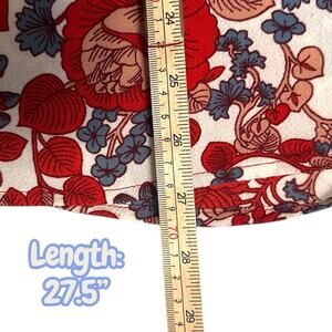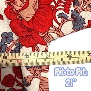 Caslon Red Floral Boho Blouse Size M Long Sleeve Split Neck Peasant Top Artsy