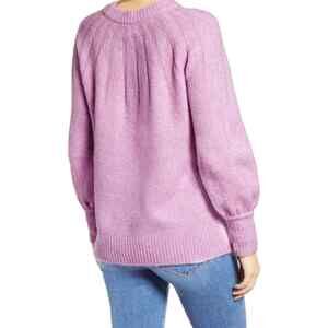 Cozy up to cool-weather style in a pretty, plush crewneck sweater designed with a ribbed yoke, blouson sleeves and relaxed fit.