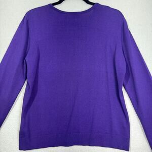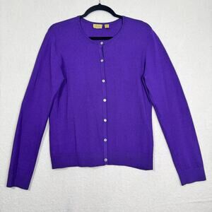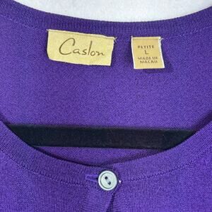 Caslon Royal Purple Crewneck Cardigan Sweater Petite Large Rib Knit Trim Rayon