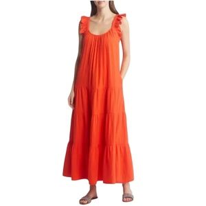 Caslon Ruffle Tiered Maxi Sundress in Tangerine