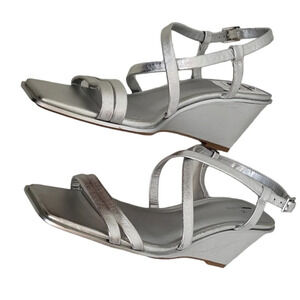 Caslon Sandals Womens Silver Leather Paola Open Square Toe Wedges
