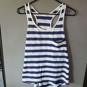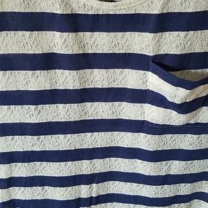 Caslon Scoop Neck Striped Tank Top. Navy blue and white lace. Front pocket. Size small. New without tags. Perfect for spring!