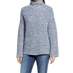Great condition, new with tags. Caslon. Shaker Mock Neck Chunky Knit Oversized Sweater. Blue/ White. Long Sleeve. Size large. Measurements available upon request. Smoke free home. No trades, offers welcome.