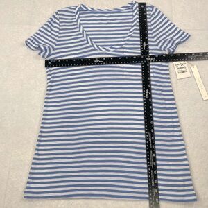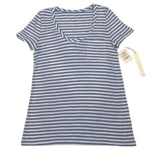 Caslon Shirt Womens XXS Brooke Stripe Tee Blue White Short Sleeve Rounded V-Neck Soft. Chest pocket. Brand new with tags. See photos for measurements. Ships quickly from smoke-free home.