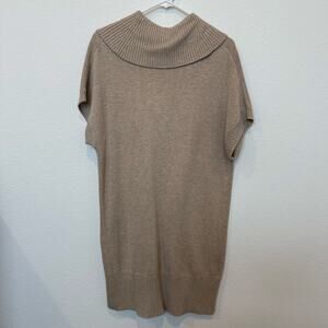 Caslon Short Sleeve Cowl Neck Sweater Pockets Tan Beige Cotton Viscose Medium