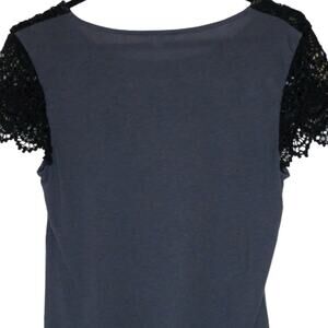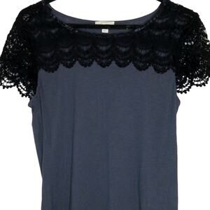 Caslon Womens M Gray Black Crochet Top Lightweight Short Sleeve Shirt