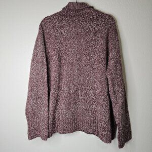 Burgundy marled knit sweater. Button up. Pockets on the front.