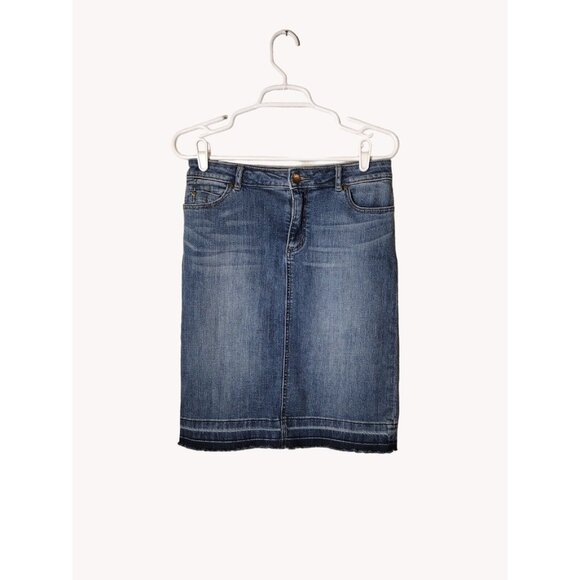 Caslon Skirt 2 Denim Raw Hem Pockets Stretch Mildly Distressed