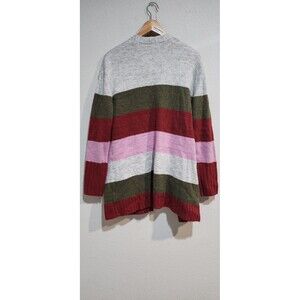 Caslon Small Staggered Stripe Cardigan Open Front Shawl Collar Sweater