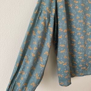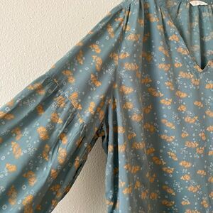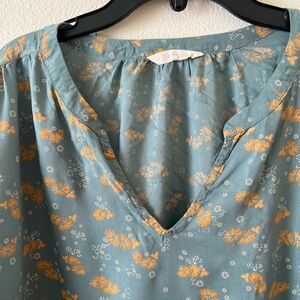 Caslon Split Neck Top in Green Yellow Mia Floral size small 100% Modal L