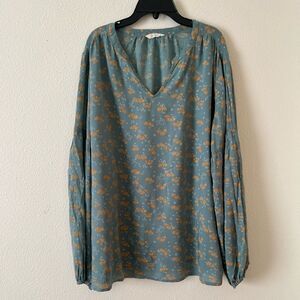 Caslon Split Neck Top in Green Yellow Mia Floral size Large
