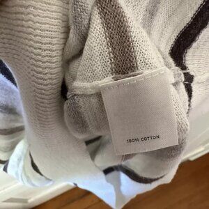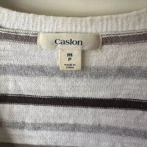Caslon Striped Button Up V-Neck 100% White Cotton Knit Tee rn58665