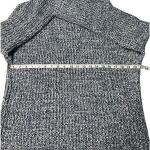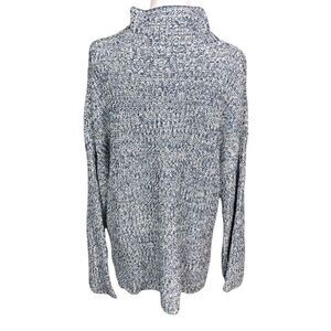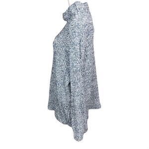 Caslon Sweater Tunic Shaker Funnel Neck Mock Turtleneck Pullover in Blue Ensign and Ivory Marble with Long Bell Sleeves Women Size Small Chunky Knit Oversized Winter Casual